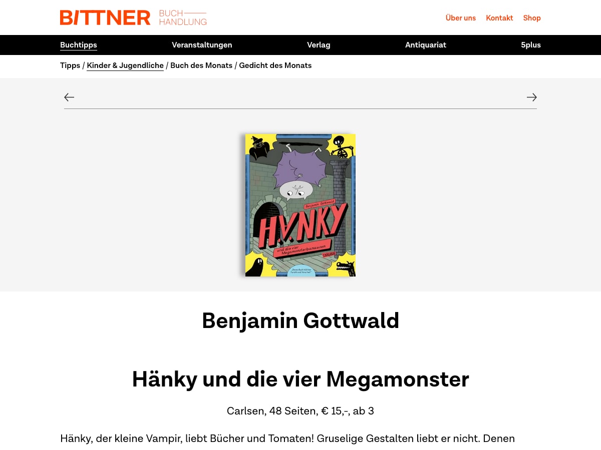 Buchhandlung Bittner ist eine der renommiertesten Buchhandlungen Kölns — mit eigenem Verlag, dem Literaturmagazin 5plus und regelmäßigen Lesungen in Kooperation mit der Universität zu Köln.