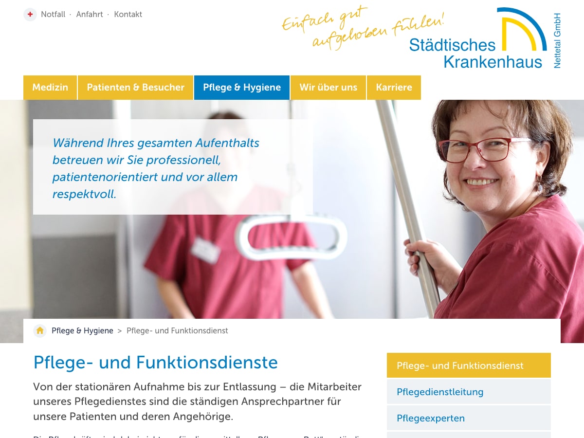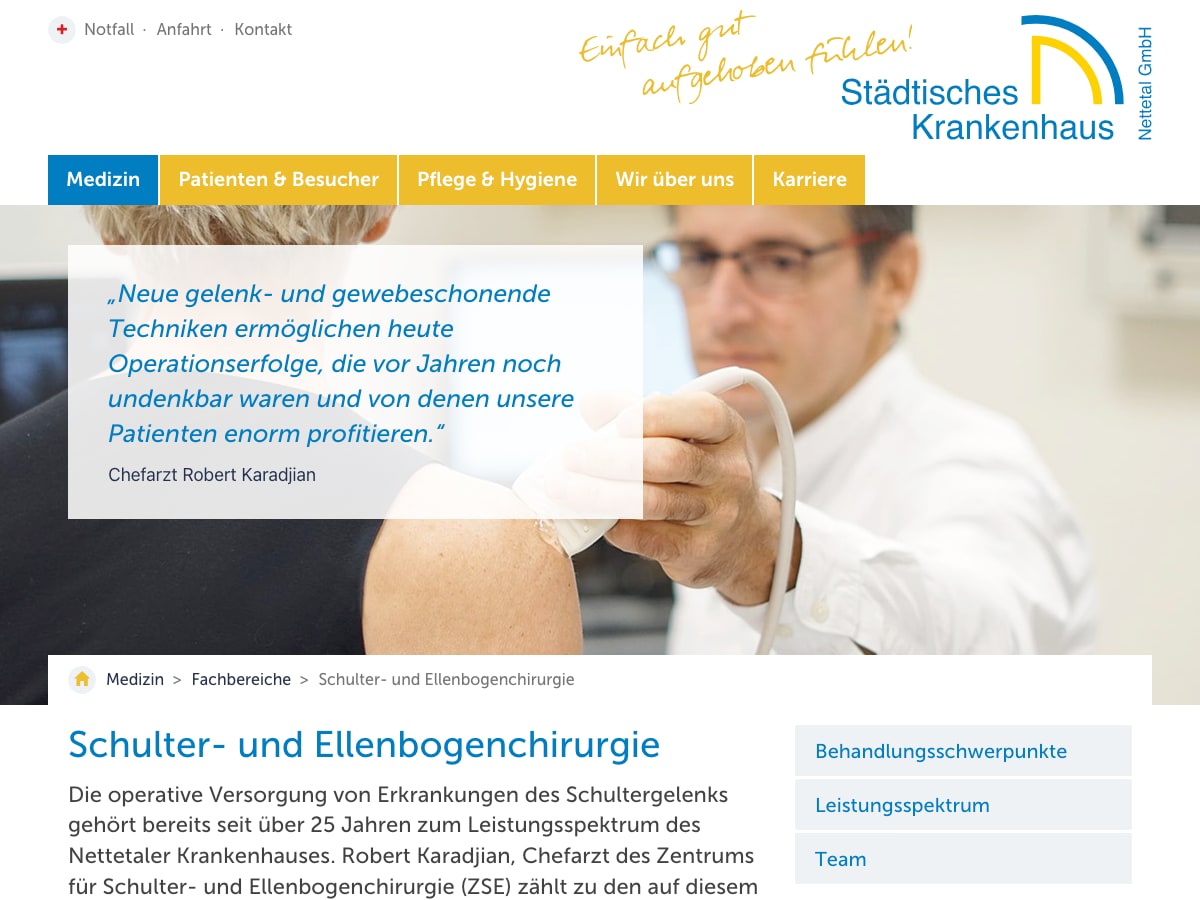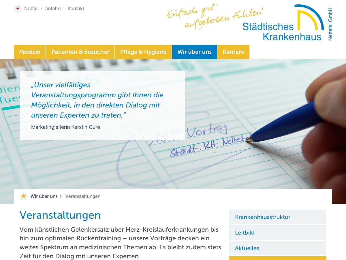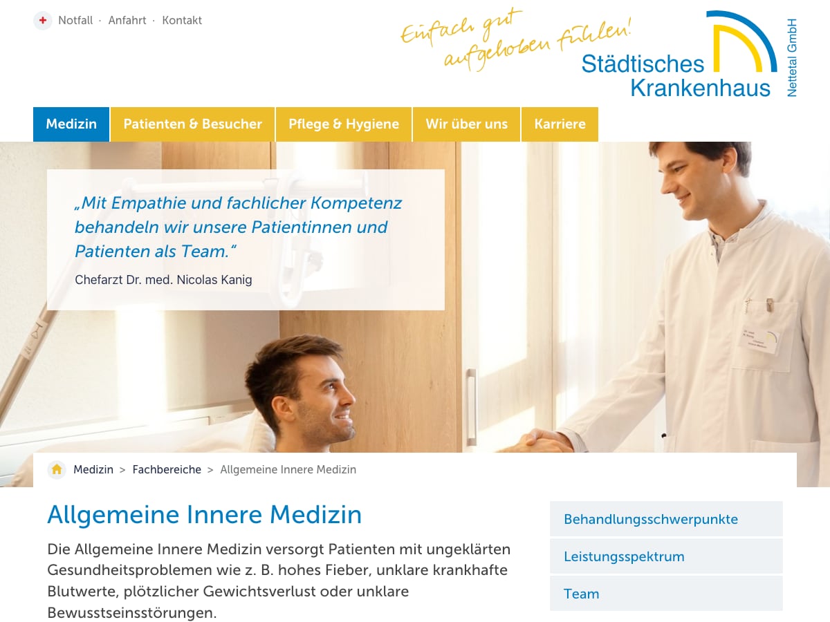 Webdesign für ein städtisches Krankenhaus mit breitem medizinischem Spektrum.
