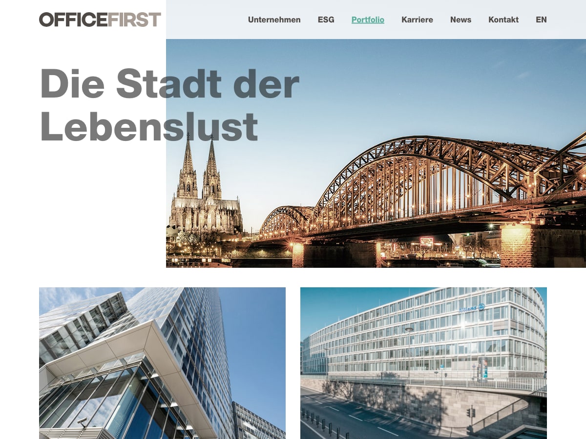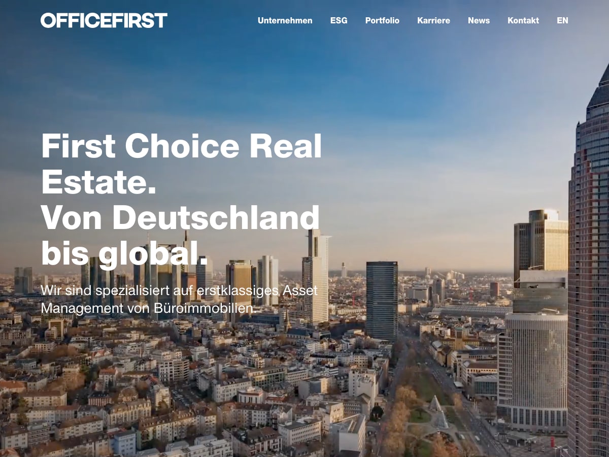 OFFICEFIRST Real Estate verwaltet Immobilien in den wichtigsten deutschen Märkten — Frankfurt, Berlin, München, Hamburg und Köln. Das Unternehmen gehört zum Blackstone Real Estate Portfolio.